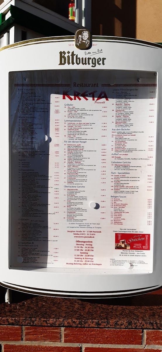 At Kreta Pasewalk, the menu offers a delightful journey through fresh and flavorful dishes, prepared with care and attention to detail. Each item is thoughtfully crafted to bring out the best in local ingredients, with something to please every palate. Whether you're craving comforting classics or something a bit more adventurous, you'll find a variety of options that highlight the rich tastes of the region. The inviting atmosphere and well-curated selections make dining here a relaxed experience. From hearty meals to lighter bites, each dish on the Kreta Pasewalk Menu is designed to satisfy both hunger and curiosity.